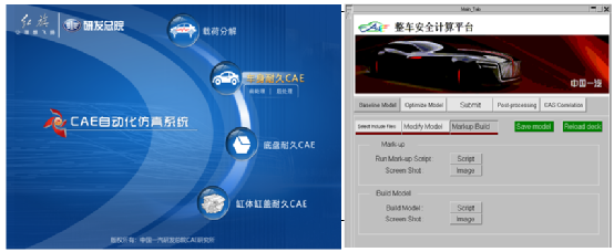 本技术以实现24个月开发周期为指导思想。以研发总院CAE研究所成熟的分析方法为基础,集成现在有的强度耐久,行人保护分析软件,针对底盘、车身、缸体缸盖、行人保护四大技术模块,建立强度耐久、行人保护仿真自动化技术平台。