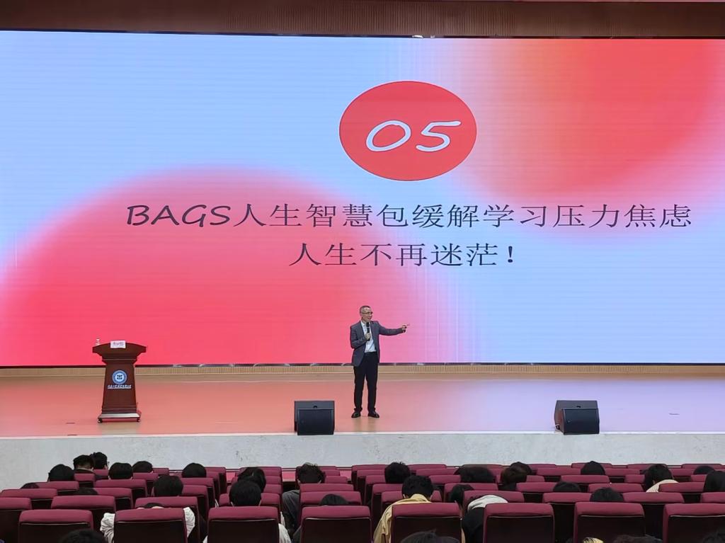 分享中,朱光辉老师立足创业本质与青年成长规律,摒弃传统理论灌输,从创业底层逻辑、资源整合、团队协作等展开系统讲解。他强调,创业启动需统筹人力、物力、财力,实现资源高效配置与高效流转,并以哲学视角引导学生学会链接资源、凝聚团队力量。他倡导学子常怀感恩之心、敬畏时代与平台,在成长中坚守初心、实现良性发展。针对大学生普遍面临的成长焦虑与方向迷茫,他现场分享478呼吸法与独创的BAGS“人生智慧包”,为大家提供实用的压力缓解与自我提升方法。