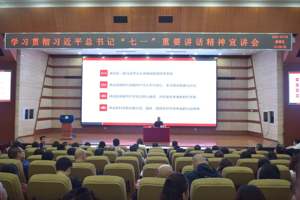 10月15日,学校党委委员、副院长赵柏森在第一报学术报告厅为经济与管理学院、机械工程与自动化学院全体教职工及学生党员作习近平总书记“七一”重要讲话精神宣讲报告。
