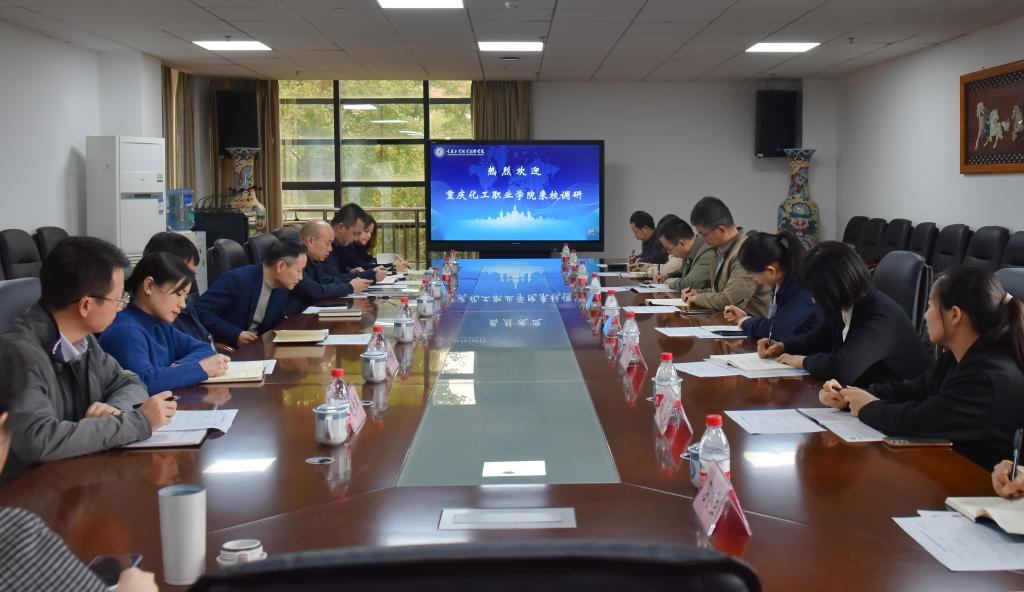 10月21日,重庆化工职业技术学院副校长张荣及相关部门负责人等来我校调研学习“双高”建设经验。我校副院长赵柏森率相关部门负责人等热情接待了调研组一行,双方在办公楼二楼会议室开展座谈。