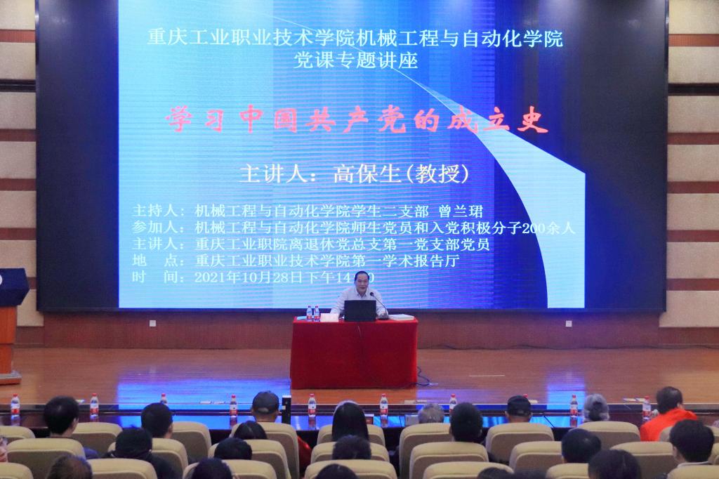 10月28日,学校机械工程与自动化学院党总支联合学校离退休六支部在第一学术报告厅开展了党史学习教育专题讲座。讲座由离退休党员高保生教授主讲,机械工程与自动化学院师生党员与入党积极分子200余人参加讲座。