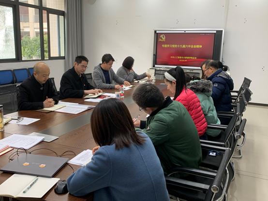 日前,学校人工智能与大数据学院党总支在学院二楼会议室专题组织学习党的十九届六中全会精神。学校党委委员、纪委书记、监察专员颜正,学院党总支委员及各支部委员参加会议。会议由学院党总支书记唐腾健主持。
