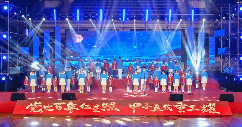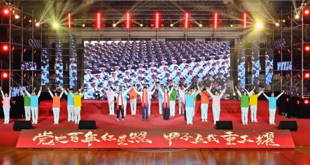 晚会采取线上直播方式,围绕“党史百年红星照,甲子五载重工耀”主题,以歌舞表演、剧场配音、花式走秀、致敬老兵、现场抽奖等方式营造了欢庆繁盛的氛围。