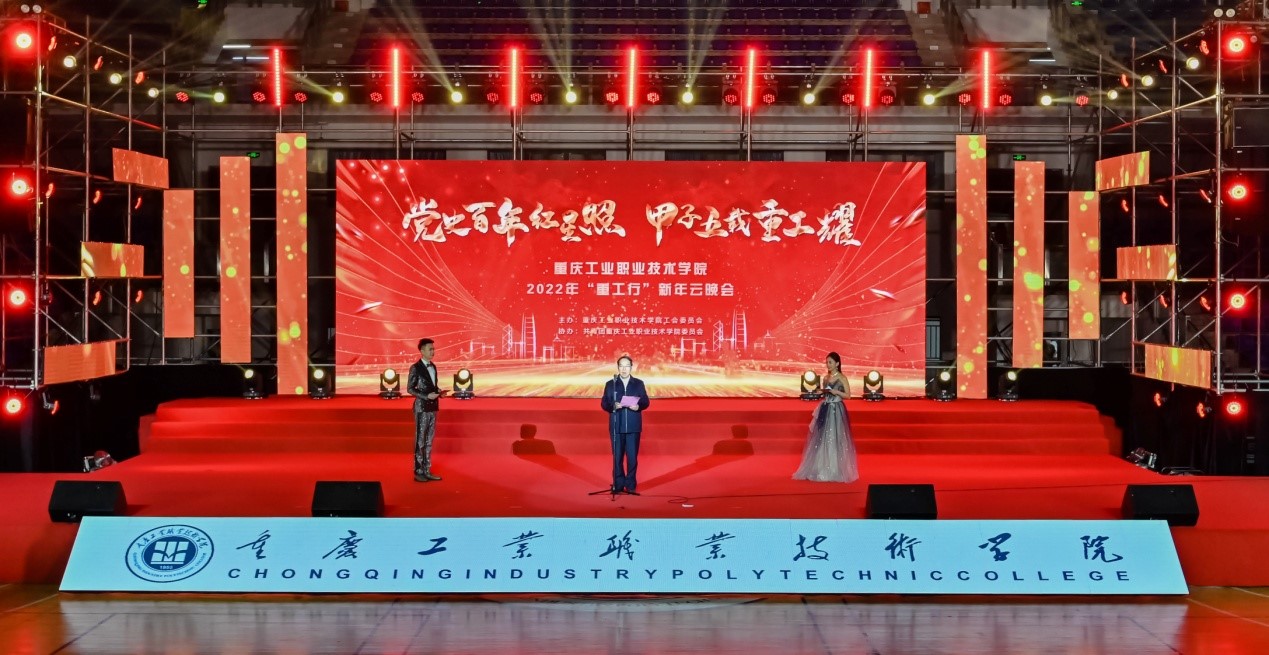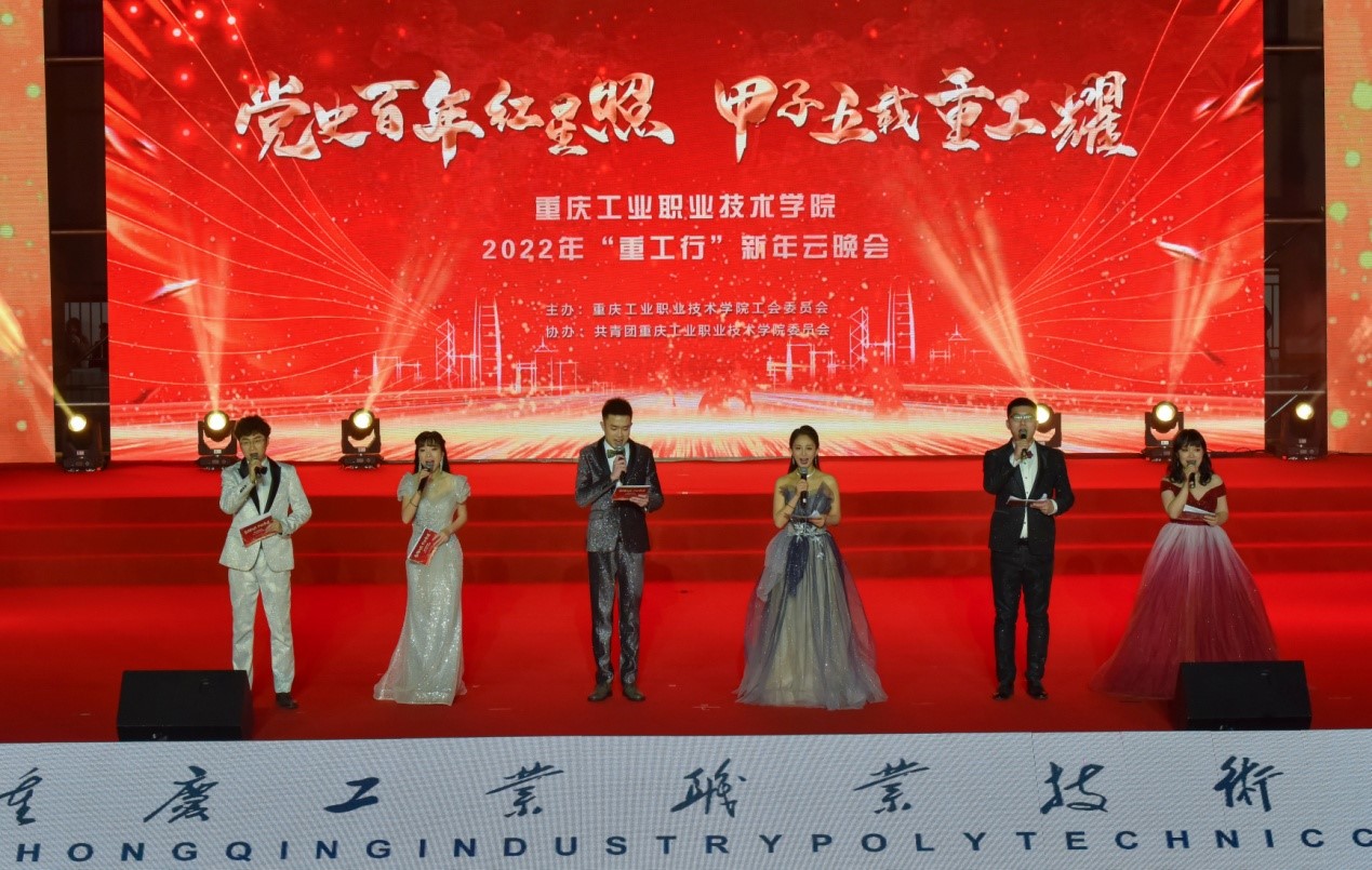 12月23日,学校在体育馆举办“重工行”新年“云晚会”。学校党委书记王官成,党委副书记、院长郭天平,党委副书记徐益、副院长徐兴旺、秦传江,纪委书记颜正,部分师生代表到场观看。