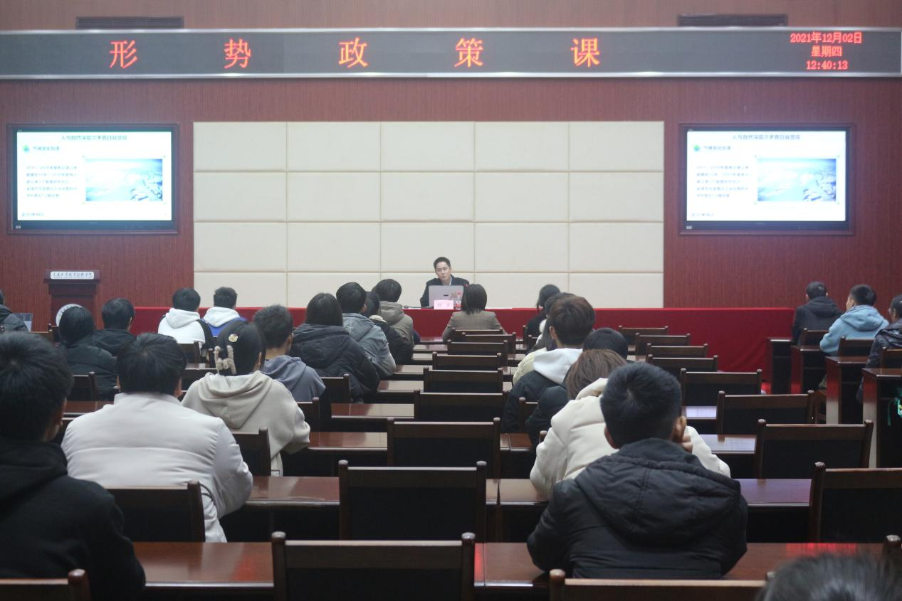12月2日,学校党委委员、纪委书记颜正为人工智能与大数据学院学生讲授形势与政策课,学院60余学生代表聆听授课。