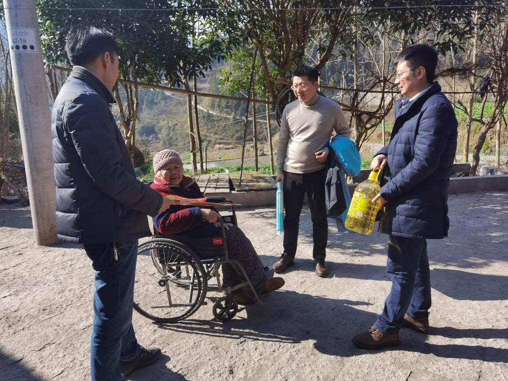 随后,校村双方领导深入当地村民家中,详细了解村民的家庭经济状况、身体健康情况等,并为他们送去慰问品和新春祝福。