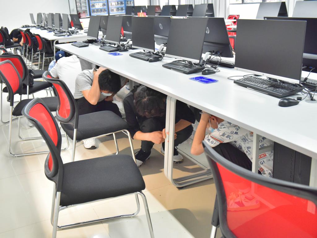 利民防火中心教官王昌兴通过短视频向与会师生介绍了地震、洪水、泥石流、山体滑坡、台风等自然灾害的破坏力及危害性,针对不同类型的自然灾害,向师生宣讲了安全防范知识以及应对措施。讲座结束后,全体师生移步到第三教学楼内开展防震应急疏散现场演练,演练现场组织有序、保障有力。