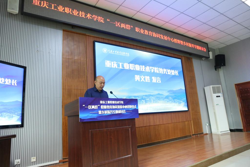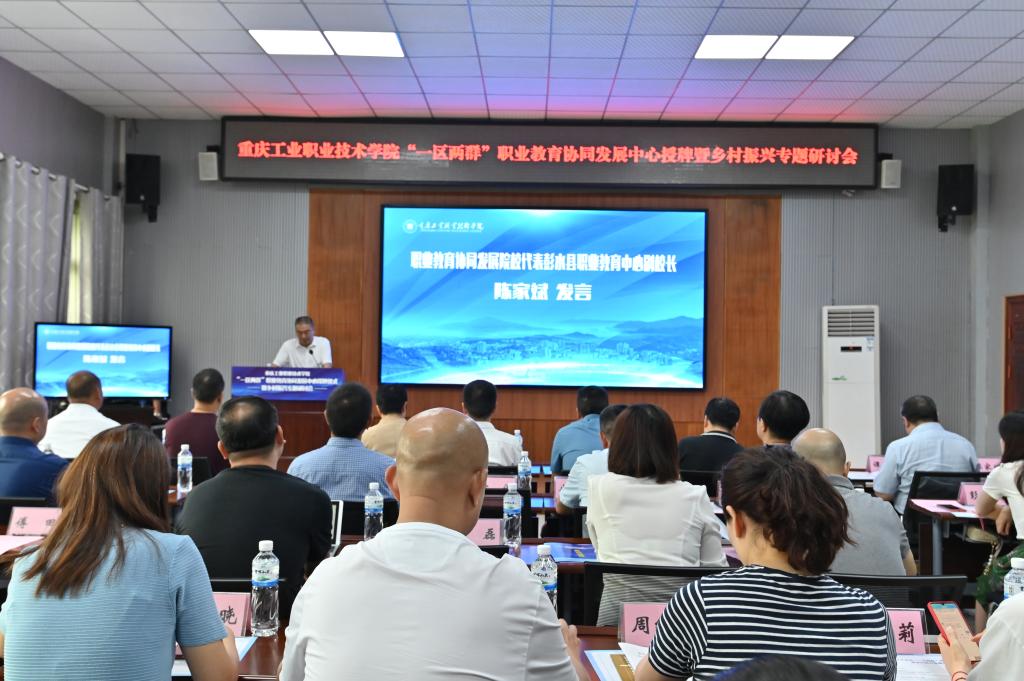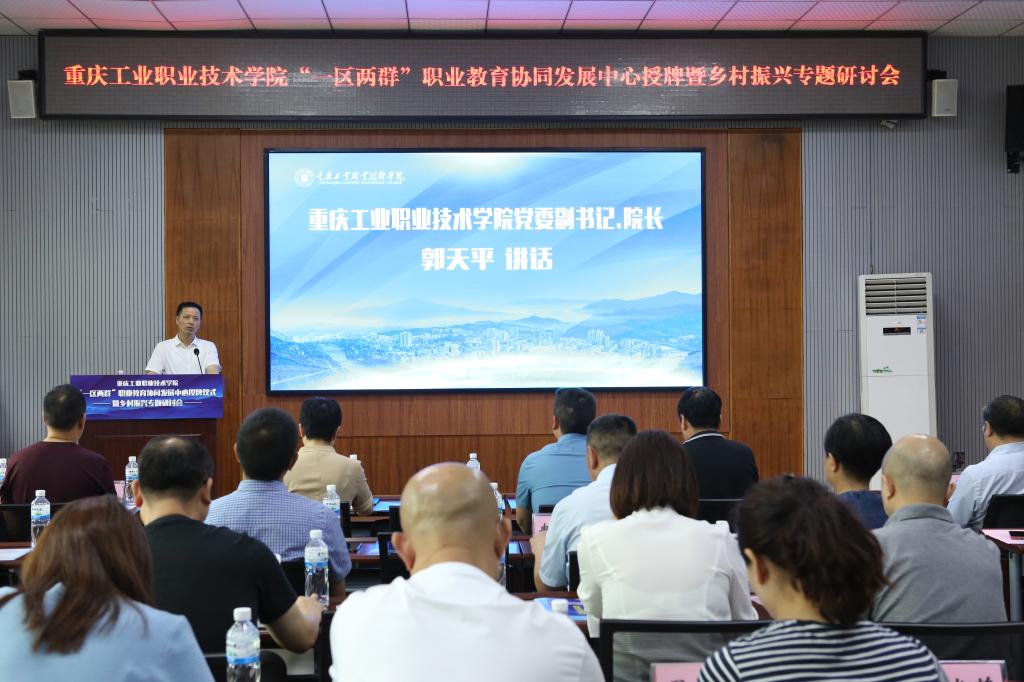 学校院长郭天平在授牌仪式上讲到,今年年初,学校调研组一行深入渝东南、渝东北部分区县,就发挥国家级“双高计划”高水平学校作用,推动“一区两群”职业教育协同发展与服务乡村振兴建设开展了为期6天的调研。今天举行的“一区两群”职业教育协同发展中心授牌仪就是贯彻落实习近平总书记对重庆和职业教育的重要指示批示精神,全面推进今年年初,学校与6个区县签署的合作协议的有关任务,切实助力“两群”地区中职学校共同实现高质量发展。他进一步讲到,学校将从三个方面与各中职院校共同助力乡村振兴、助推“一区两群”协调发展。一是提高政治站位,为职业教育助力乡村振兴“赋能”。要充分认识到乡村振兴战略将作为国家新一轮经济发展的重要部署。在乡村振兴的“五大振兴”中,“人才振兴”是重点,通过“一区两群”职业教育协同发展,加强技能型人才的培养与培育,让职业教育培养的人才深入到乡村振兴的第一线,推动“两群”经济高质量发展。二是建立协同机制,为“两群”职业教育高质量发展“添彩”。建立纵向贯通、横向融通的现代职教体系,建立“一区”优势与“两群”特色相融合的帮扶机制,真真正正实现优质课程资源、优质教学设备、优秀师资力量的共享共建。三是积极探索,为助推“一区两群”协同发展“添力”。在市第六次党代会上提出的重庆今后五年的发展目标中,对职业教育发展作出了重要部署,为学校助力区域实体经济发展、制造业转型升级提供了政策指引。