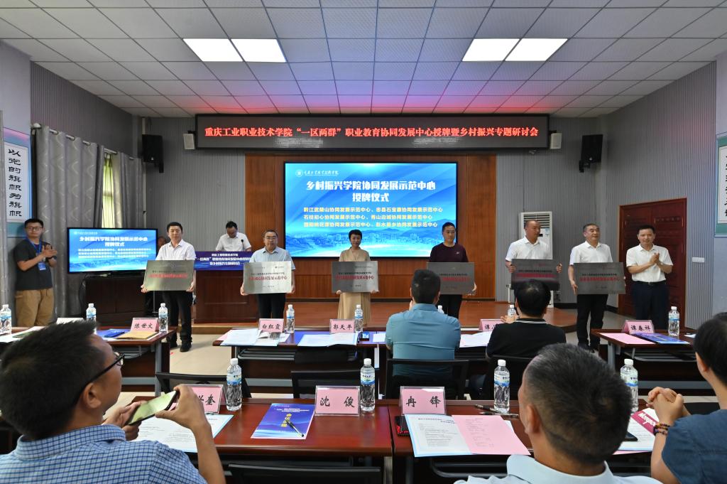 学校院长郭天平为黔江武陵山协同发展示范中心、石柱初心协同发展示范中心、忠县石宝寨协同发展示范中心、秀山边城协同发展示范中心、彭水苗乡协同发展示范中心、酉阳桃花源协同发展示范中心授牌