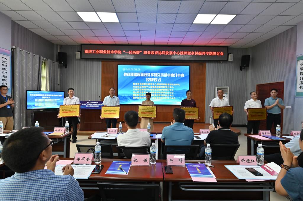 学校纪委书记颜正为黔江区民族职业教育中心课程思政教学研究分中心、忠县职业教育中心课程思政教学研究分中心、石柱职业教育中心课程思政教学研究分中心、秀山职业教育中心课程思政教学研究分中心、酉阳职业教育中心课程思政教学研究分中心、彭水县职业教育中心课程思政教学研究分中心授牌