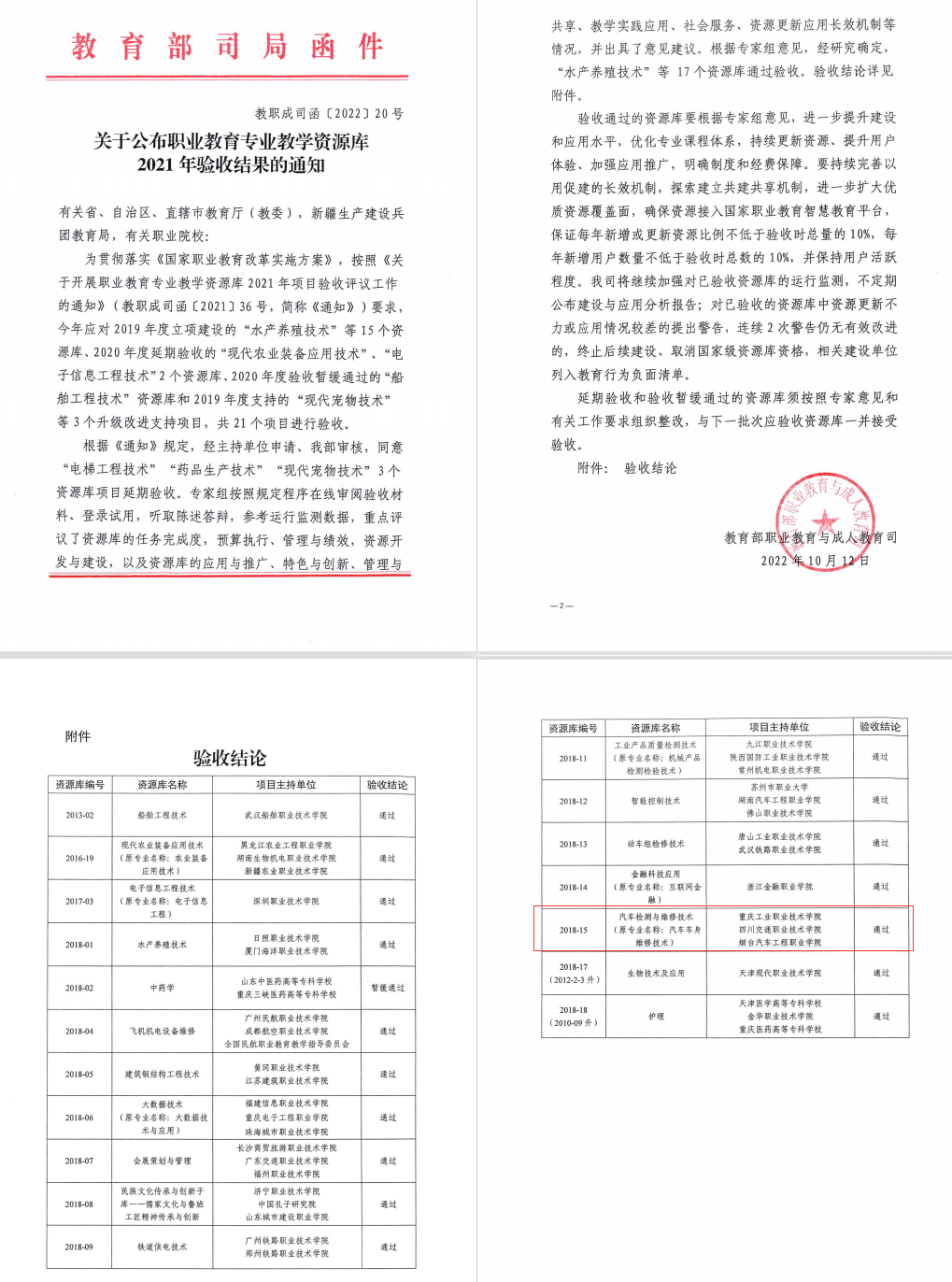《关于公布职业教育专业教学资源库2021年验收结果的通知》文件
