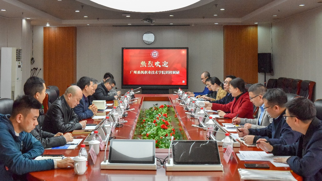 会上,郭天平书记代表学校对广州番禺职业技术学院的到来表示热烈欢迎,并就学校发展历史、办学规模、校企合作、“双高计划”建设、人才培养和师资队伍建设等方面作了介绍。郭天平书记表示,国家“十四五”规划纲要明确了职业技术教育发展方向,提出了要增强职业技术教育适应性,希望双方院校长期保持密切联系与交流,推动“双高计划”建设提质增效,共同推动职业教育高质量、现代化发展。