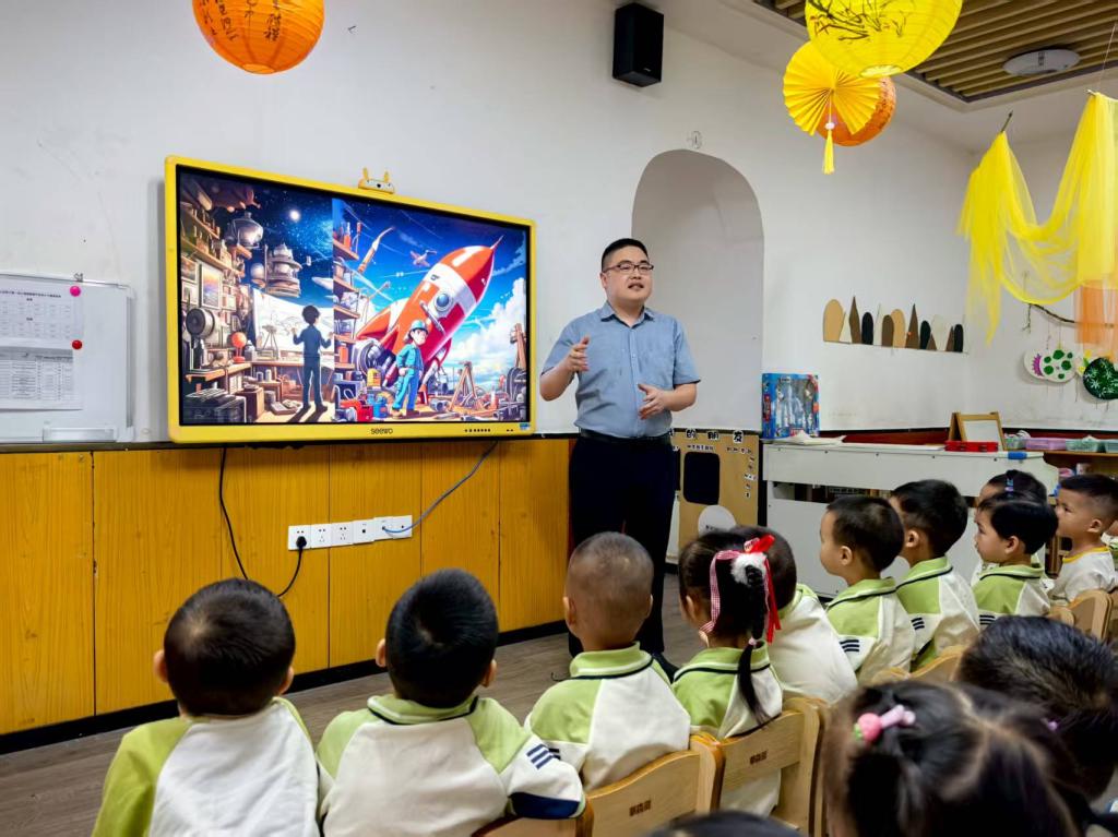 9月22日下午,在渝北区两江第一幼儿园的《月亮,我们来了》科学启蒙活动中,近100名幼儿参与了科学启蒙活动。学校刘河清博士通过生动的视频和图片展示,向小朋友们介绍了地球和月球的基本知识。通过航天模型演示和故事讲解,孩子们不仅了解了人类登月的过程,还了解了科学家、工程师和宇航员等职业,激发了他们对科技探索的浓厚兴趣。