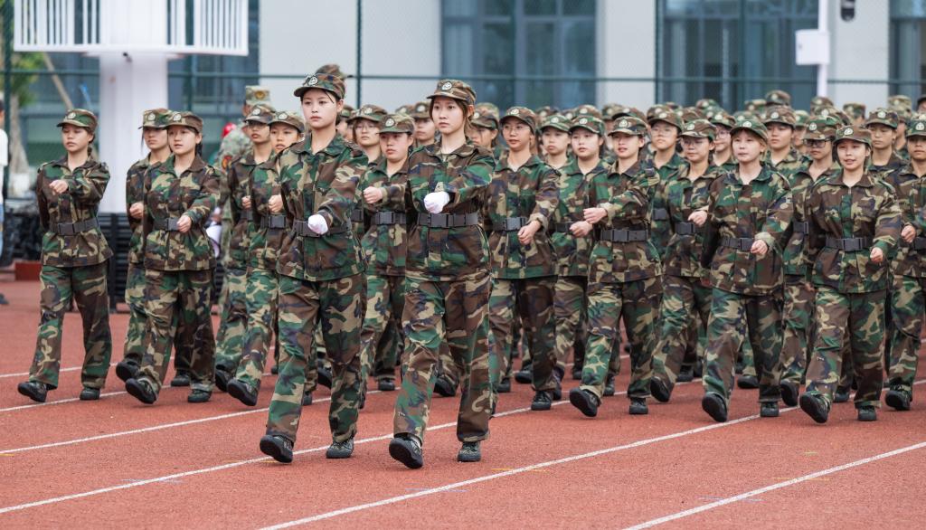 国歌声声催奋进,红旗猎猎映青春。军事训练成果汇报表演由20个军训连队以自信的姿态和昂扬的斗志依次走过主席台接受检阅。队列整齐划一,展现出军人服从命令、听从指挥的优良作风;匕首操女兵的巾帼风采赢得热烈掌声;刺杀操应急棍术气势如虹,战术队形灵活变换,军体拳其劲如铁,展现出重工大学子铿锵斗志。