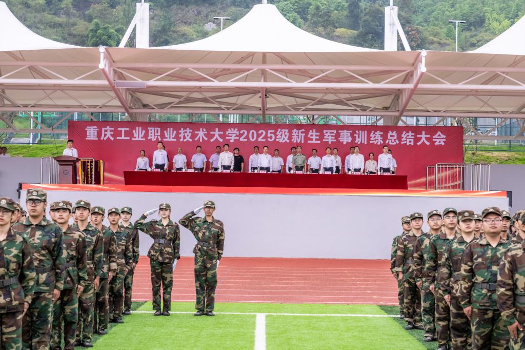 9月30日,重庆工业职业技术大学2025级新生军训总结大会在南川校区田径运动场举行。南川区人民武装部政委向文大校出席大会,与学校党委书记郭天平,党委副书记、校长周传德及全体在家校领导一同检阅新生军训成果,见证新生们历经军训淬炼洗礼所展现昂扬向上的精神风貌与扎实过硬的训练成效。学校职能部门负责人,各二级学院党总支书记、院长,承训单位全体教官、新生辅导员及2025级全体新生参加大会。大会由学校党委常委、副校长袁国主持。