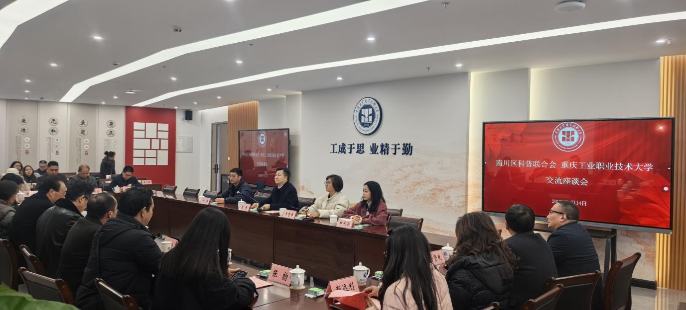 座谈会上,双方围绕深化校会合作、精准对接资源、协同服务区域发展等议题展开深入探讨。周建介绍了南川区科普联合会的职能定位、工作布局及区域科普事业发展需求,表示希望依托学校人才、技术、平台优势,丰富科普服务内容、创新科普传播形式。袁国详细介绍了南川校区的办学定位、专业设置及服务地方发展的实践成果,强调学校坚持扎根地方、服务地方,愿以科普合作为切入点,推动校地资源互补、优势叠加。