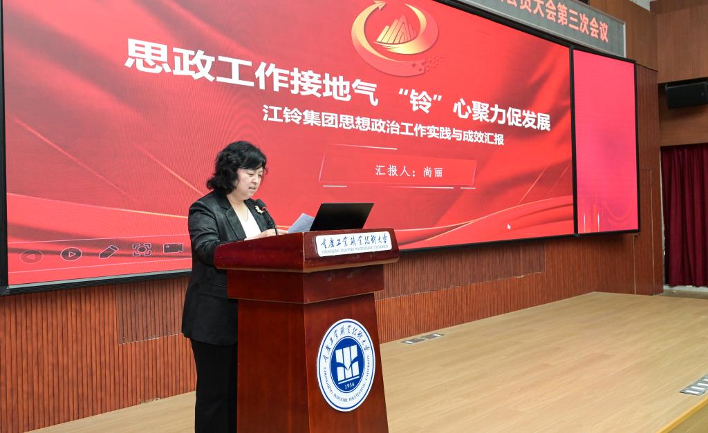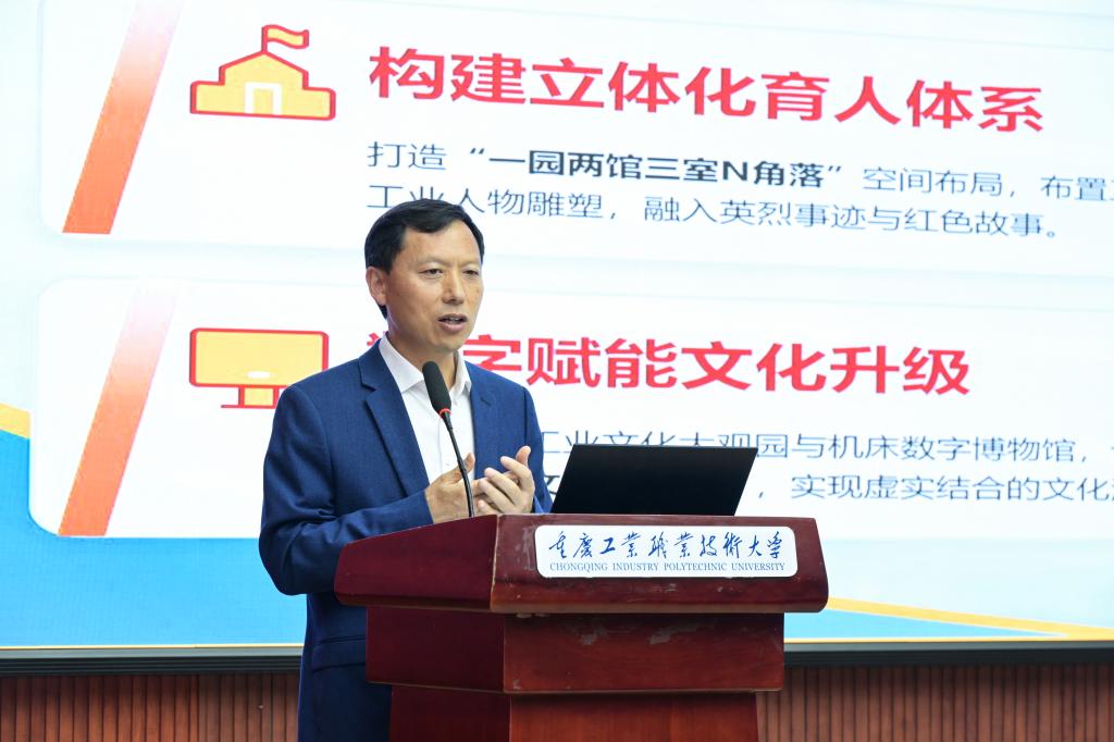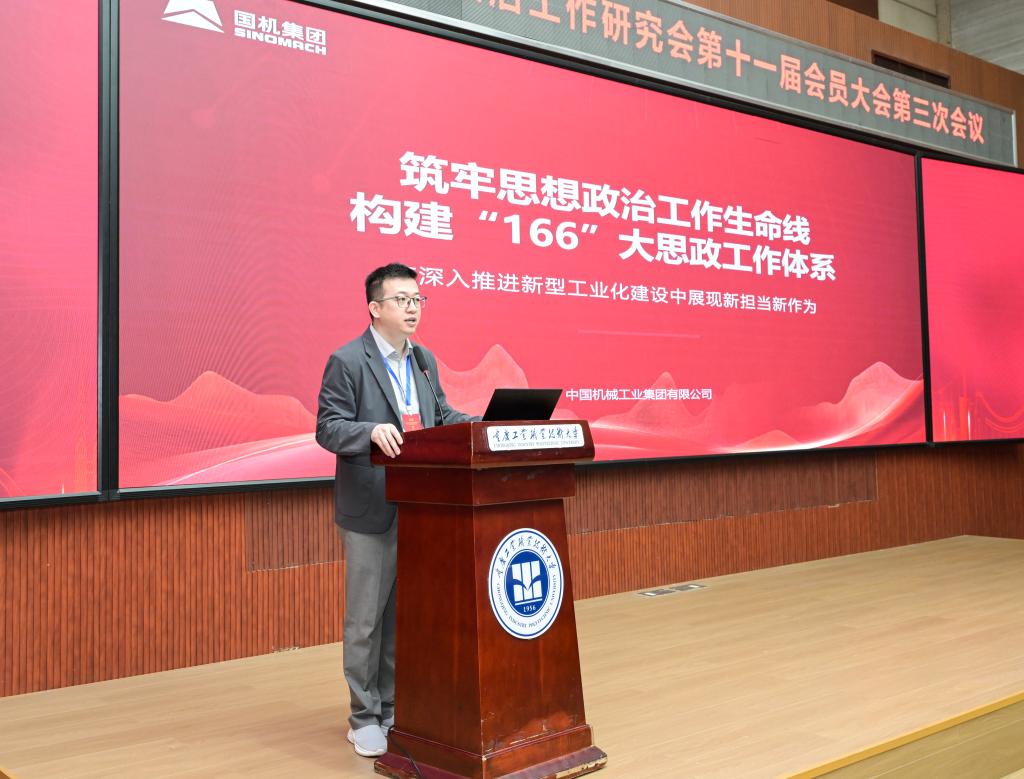 在经验交流环节,中国机械工业集团有限公司党群工作部党建处副处长武明铎作题为《筑牢思政工作生命线 构建“166”大思政工作体系》经验分享,介绍了集团在思政工作方面的探索实践,从理论固本、宣传引导、文化引领和榜样示范等方面明确今后思政工作方向。江铃汽车集团有限公司党委书记助理、党委宣传部部长、机关党委书记尚丽作题为《思政工作接地气 “铃”聚力促发展》经验分享,汇报了集团思政工作理念、构建考核体系、促进融合发展等方面的具体举措。山推工程机械股份有限公司党群工作部、党委宣传部部长崔保运作题为《把稳思想之舵 凝聚奋进之力》经验分享,汇报了公司2025年党建与发展成果,从政治铸魂、发展担当、文化赋能等方面阐述了服务国家战略的方向。我学校党委副书记张荣作题为《“红岩精神+工匠精神”双轮驱动特色育人模式探索与实践》的经验分享。他围绕红岩精神对工匠人才的思想引领、本领淬炼和队伍锻造三个维度,系统阐述了学校推动红岩精神传承与工匠精神培育深度融合的具体做法,并介绍了在育人实践中取得的积极成效。