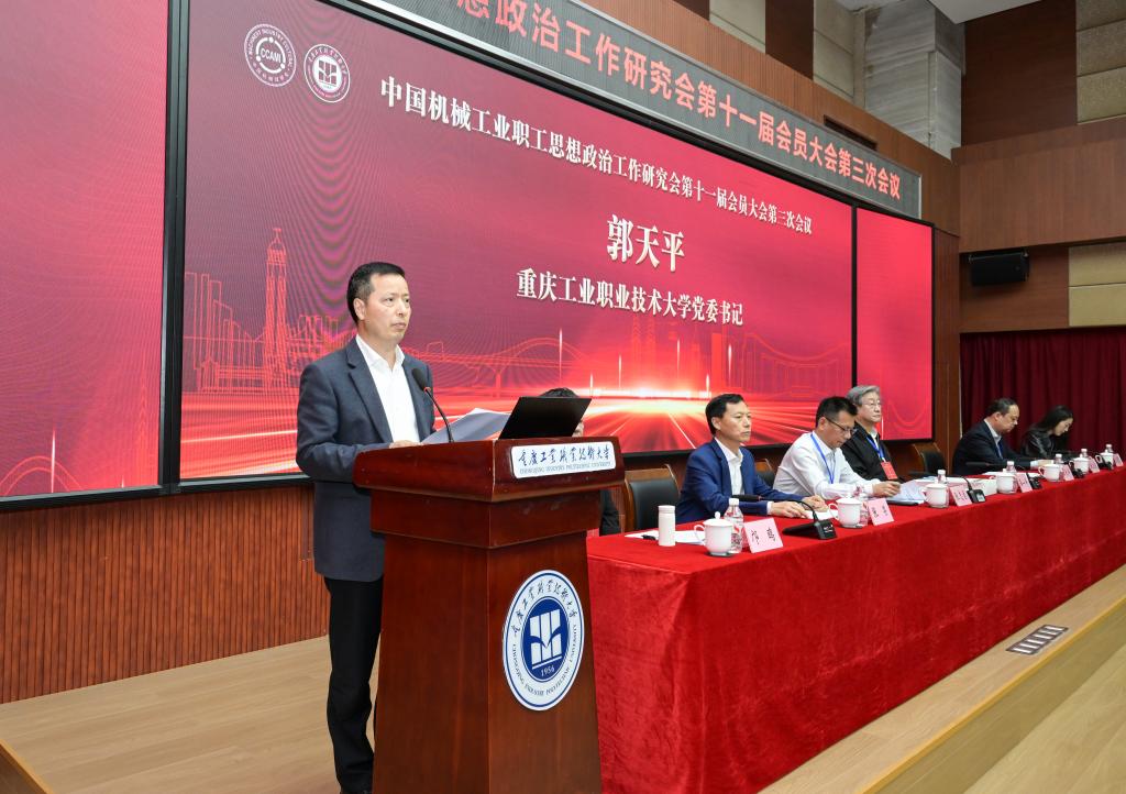 4月22日至24日,中国机械工业职工思想政治工作研究会(以下简称“中国机械政研会”)第十一届会员大会第三次会议在我校顺利召开。本次会议由中国机械政研会主办,我校承办。中国机械工业联合会党委副书记、纪委书记、中国机械政研会理事长薛一平,学校党委书记郭天平、党委副书记张荣,中国机械政研会副理事长、重庆机电控股集团公司党群工作部部长王碧霞,中国机械政研会副理事长、中国铸造协会常务副会长张志勇,中国机械政研会副理事长、徐州工程机械集团有限公司党委副书记、工会主席甄文庆出席会议,来自全国各行业企业及院校的会员单位130余人参加会议。会员大会由中国机械政研会副理事长兼秘书长邝鸥主持。