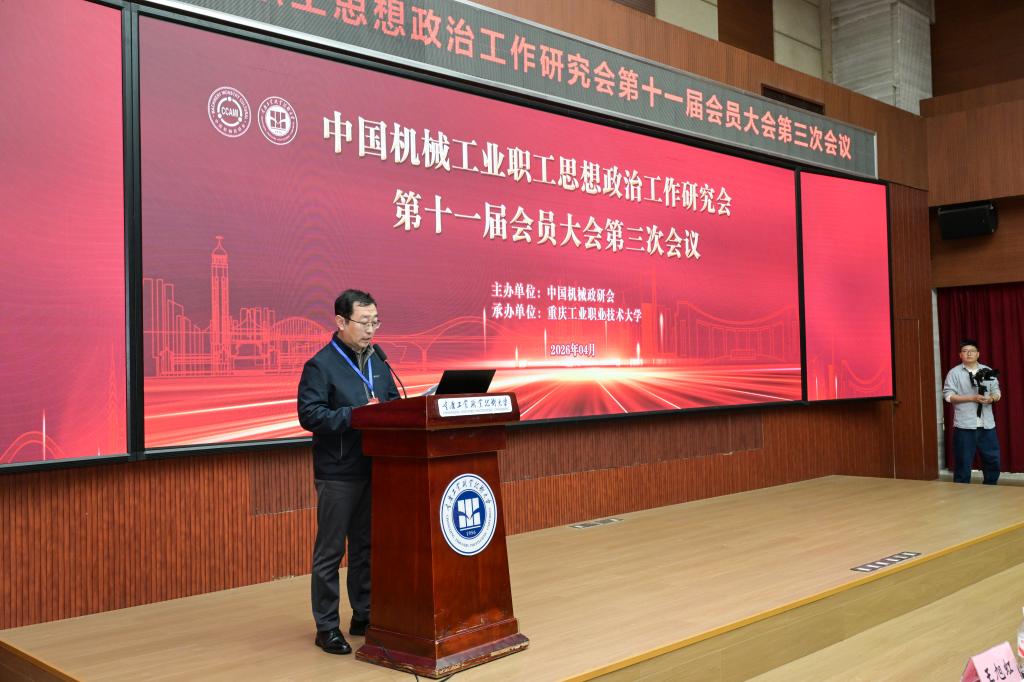 4月23日上午,第十一届会员大会第三次会议在学校第二学术报告厅举行。会议以习近平新时代中国特色社会主义思想为指导,深入贯彻党的二十大和二十届历次全会精神,全面落实习近平文化思想、《中国共产党思想政治工作条例》及全国宣传部长会议要求,总结2025年工作成效,交流行业经验,部署2026年重点任务,为机械工业高质量发展凝聚思想力量。