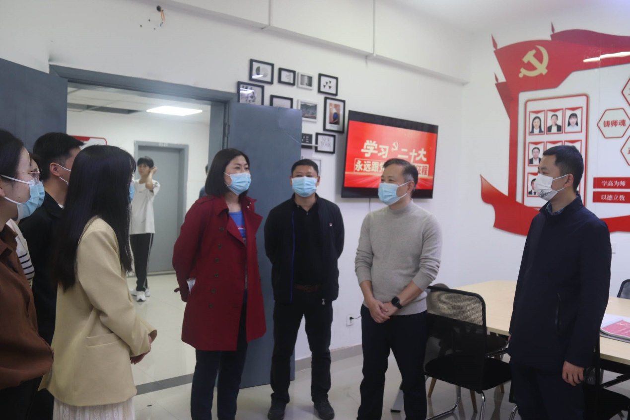 随后,赵柏森副院长一行还前往“一站式社区党团活动室”、辅导员名师工作室、党员服务站等进行工作指导。