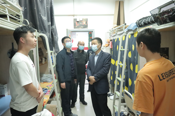 随后,郭天平院长深入车辆工程学院党团文化公寓,亲切询问了同学们核酸检测、线上学习、就业规划和生活饮食等方面的情况,耐心回答了同学们的问题,认真听取同学们的建议。他叮嘱同学们要严格遵守学校防疫政策,加强身体锻炼,积极配合学校疫情防控相关要求,继续认真开展线上学习,共同维护校园安全稳定。