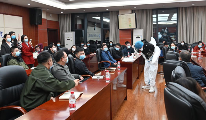 为进一步做好校园疫情防控工作,保障全校师生员工生命健康安全,我校在办公楼三楼会议室召开疫情防控核酸检测志愿服务动员暨培训会。学校党委书记王官成,党委副书记、院长郭天平,相关疫情防控工作组组长,志愿者协会负责人和教师志愿者服务队参加培训会议。会议由学校党委委员、副院长徐兴旺主持。