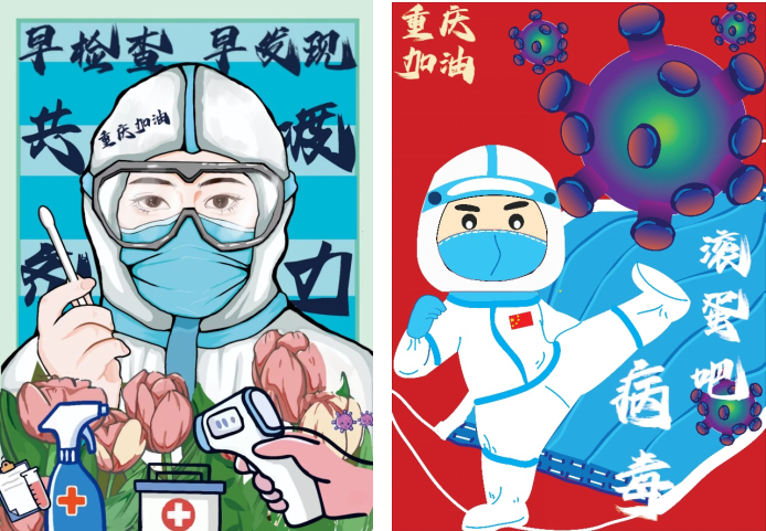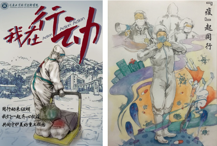 在张珈铭老师的《新媒体传播学》,何明、张文(女)老师的《字体与版式设计》课堂上,学生们通过新媒体文章的撰写和发布、字体与版式的设计,表达了对重工上下齐心抗疫的深切体会。