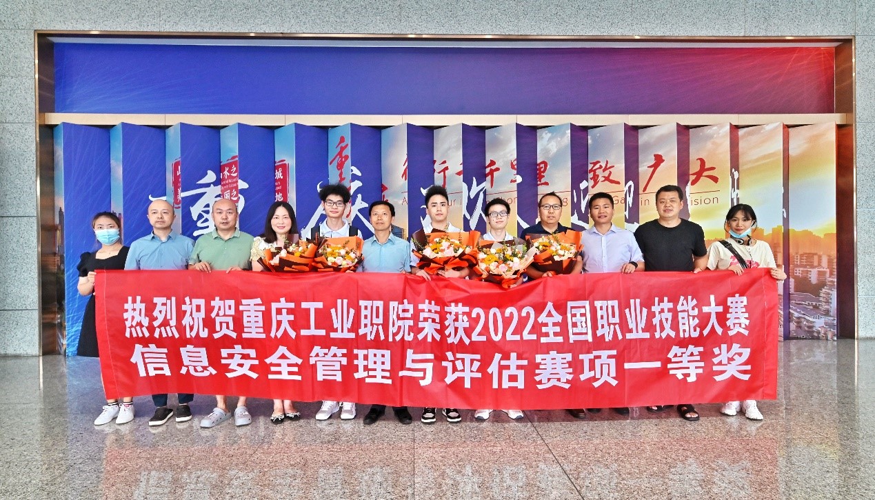 日前,学校人工智能与大数据学院指导教师何静、刘均指导的学生徐义、张维明、谢强在2022年全国职业院校技能大赛高职组上斩获信息安全管理与评估赛项团体一等奖。学校党委副书记张荣,党政办公室、教务处、人工智能与大数据学院相关负责人等到机场迎接获奖师生。张荣副书记将鲜花献给载誉而归的指导老师和学生们,并向获奖师生表示祝贺和慰问。他讲到,人工智能与大数据学院能获得全国职业技能大赛“三连冠”来之不易,这离不开师生的辛勤付出。张荣副书记表示,要继续围绕“以赛促教、以赛促学、以赛促建”的理念和目标,重视培养学生的技术技能素养, 把“三连冠”作为一个新的起点,进一步总结经验,百尺竿头更进一步,为学校高质量发展作出应有的贡献。