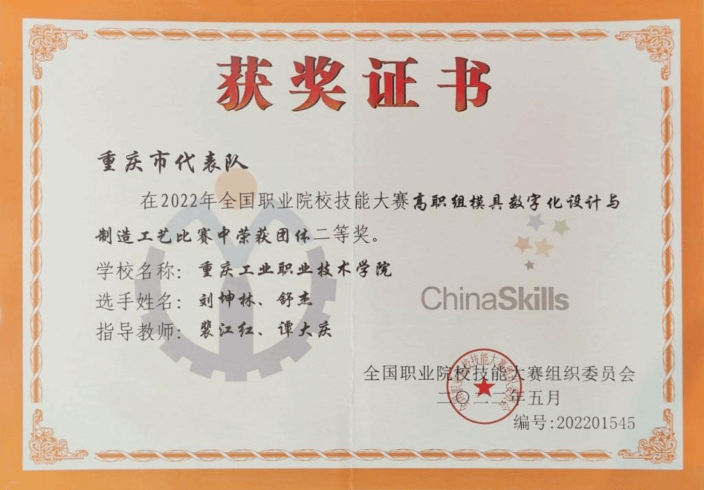 日前,学校机械工程与自动化学院教师裴江红、谭大庆指导的学生刘坤林、舒杰荣在2022年全国职业院校技能大赛(高职组)模具数字化设计与制造工艺赛项中荣获团体二等奖。