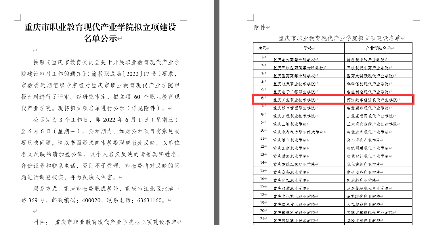 重庆市职业教育现代产业学院拟立项建设名单公示