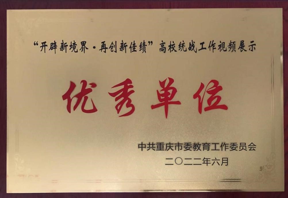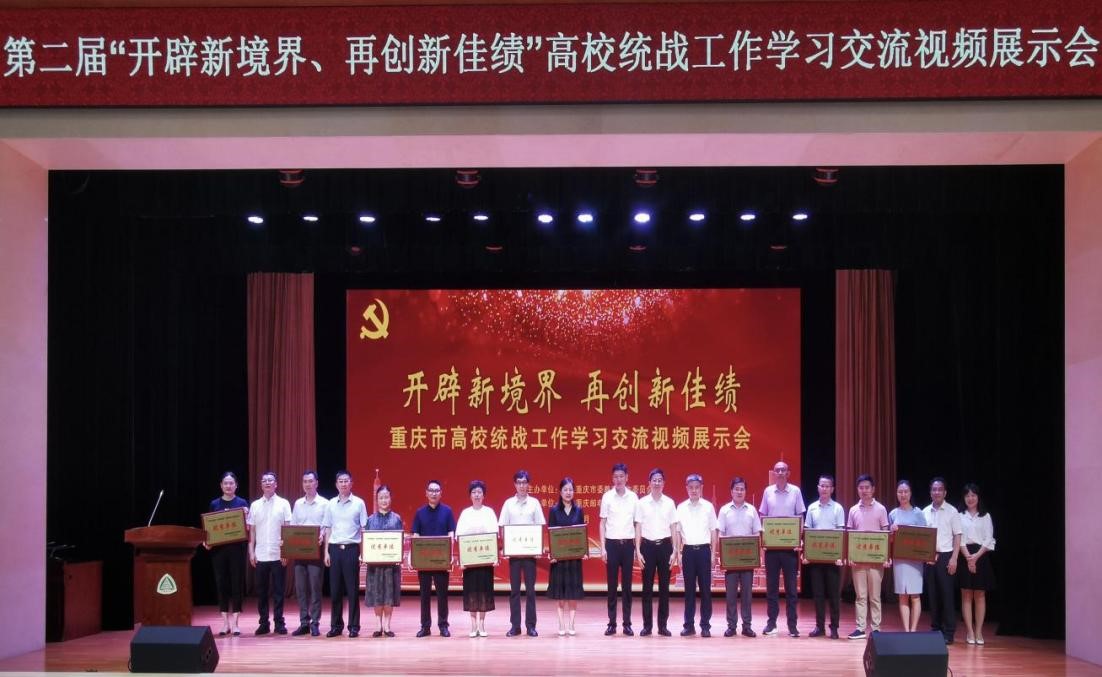 为充分展示高校统战工作新成效,进一步推动全市教育系统统战工作,市委教育工委主办了第二届“开辟新境界、再创新佳绩”重庆市高校统战工作学习交流视频展示会。学校以“‘三化’建设促进思想引领,同心同行共谋‘双高’未来”为题,围绕组织保障“制度化”、工作方式“多元化”、作用发挥“精准化”三个方面进行交流展示,展示成果荣获高校统战工作视频展示优秀单位。