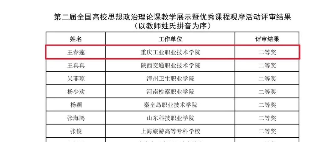 为深入学习贯彻习近平总书记在学校思想政治理论课教师座谈会上的重要讲话精神、特别是“大思政课”重要指示精神,贯彻落实中共中央、国务院《关于加强和改进新形势下高校思想政治工作的若干意见》和中共中央办公厅、国务院办公厅《关于深化新时代学校思想政治理论课改革创新的若干意见》,教育部于2021年4月,开展了第二届全国高校思想政治理论课(以下简称思政课)教学展示暨优秀课程观摩活动(以下简称展示活动)。学校马克思主义学院教师王春莲荣获教育部第二届全国高校思想政治理论课教学展示暨优秀课程观摩活动二等奖。