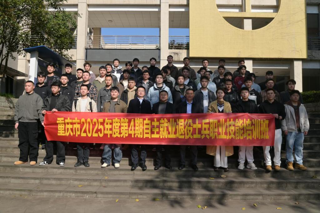 日前,重庆市2025年度第4期自主就业退役士兵互联网营销师职业技能培训班在我校举行开班仪式。重庆市退役军人培训中心副主任徐高,学校继续教育与培训学院院长谭力及50名参训退役士兵参加开班仪式。