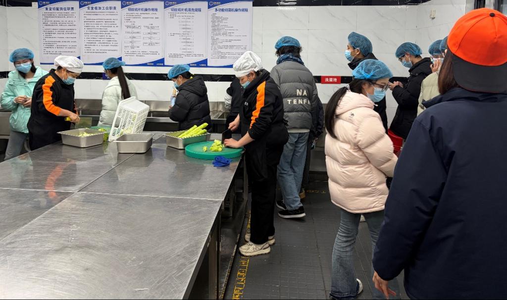 为搭建与学生高效沟通桥梁,持续优化餐饮服务品质,12月23日下午,由南川校区管委会后勤和保卫工作事务部主办、学生一、二食堂承办的“透明后厨,安心餐饮”后厨开放日活动顺利开展。18名学生代表走进食堂后厨,近距离了解食材入库、加工、烹饪与留样全流程。