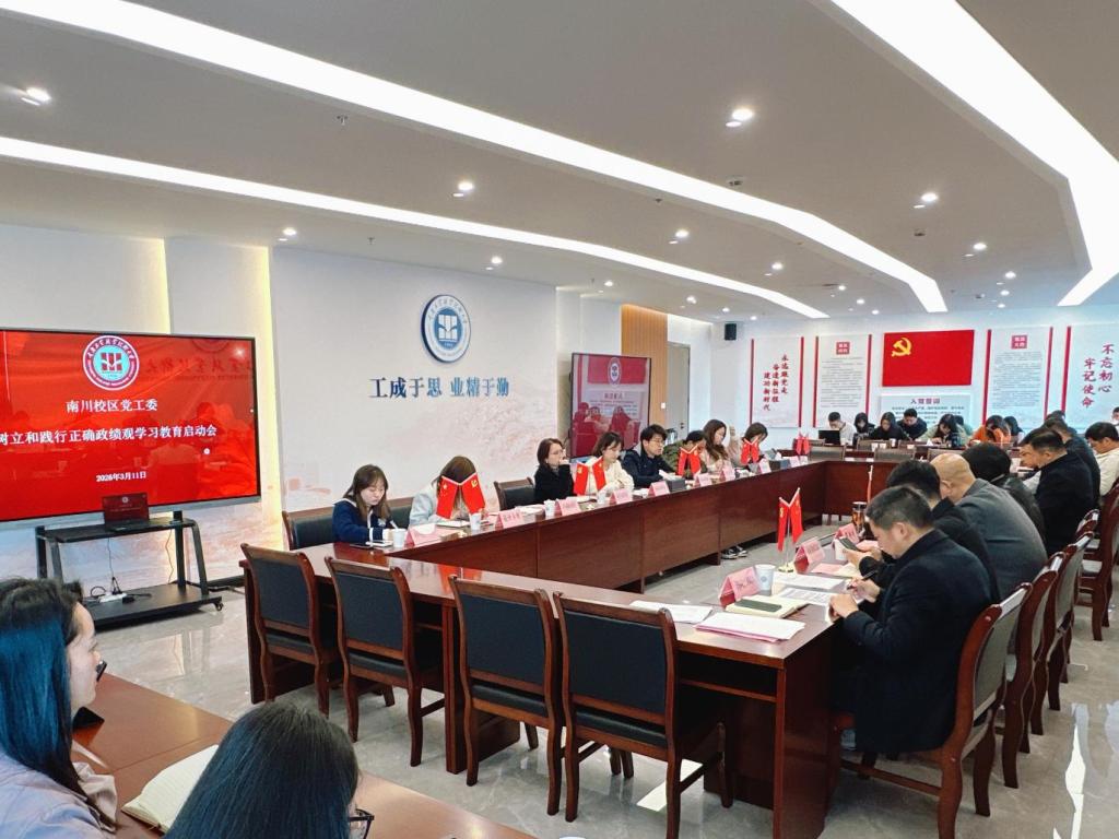 2026年3月11日上午,南川校区党工委召开树立和践行正确政绩观学习教育启动会并开展第一次全体学习,传达学习学校相关实施方案和工作精神,部署2025年度基层党组织组织生活会相关工作。会议由南川校区党工委副书记李慧萍主持,南川校区党工委委员、南川校区常驻人员参加会议。