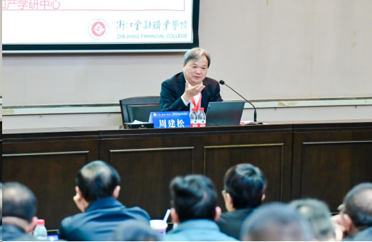 中国高等教育学会职业技术教育分会会长、浙江金融职业学院原党委书记周建松作专题报告